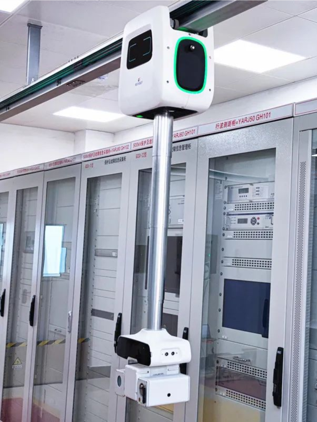 RK-681A变电站室内轨道式巡检机器人具有防护等级高、稳定性高、设备识别准确率高、运动性能优异等特点,基于柔克智能自主研发的机器人主控系统及多算法融合的视觉识别技术,搭载可见光摄像机、红外热像仪、局放传感器及多种环境传感器,可实现对设备图像(外观、仪表读数、开关位置、刀闸开合、油位、缺陷等)、设备温度的采集、局部放电检测检测及环境信息(温湿度、烟雾、各类气体含量)的实时监测。